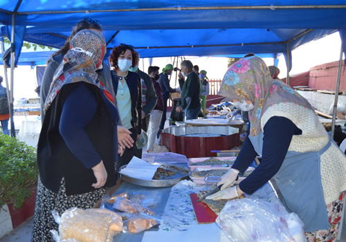 Hanımların kendi ürettikleri ürünleri hiçbir katkı maddesi olmadan çeşitlendirdiğini kaydeden Tülüoğlu, "13 hafta gibi kısa bir sürede ilgi arttı çevre illerden de gelenler oluyor bu ilgiden çok memnunuz herkesi bekliyoruz. Yaz aylarında yaklaşık 1500 kişi pazarımızı ziyaret ediyor. Özellikle keşkeğimize büyük ilgi gösteriliyor" Öte yandan hanımlarımızın yaptığı börekler ve nohut mayalı köy ekmeği almak için özellikle gelen misafirlerimiz oluyor. Her Pazar 150 tane köy ekmeği satılıyor. Ekmekler 4 kg civarında oluyor. Burada hem mahallemizi geziyorlar hem birlikte sohbet ediyoruz hem de kahvaltılarını ve organik sebze ve meyvelerinin yanı sıra kışlık yiyeceklerini de alıp gidiyorlar. 25 tezgahımızda meyve ve sebzenin yanı sıra el yapımı erişte, gözleme, katmer, kuskus incir gibi köyde yetişen tüm ürünlerimizden nar ekşisi, pekmez, erişte, kuskus, yuvarlama gibi tüm ürünleri bulabilirsiniz. Tüm ürünler hijyenik şartlarda üretiliyor ve pazarımız pandemi kurallarına tamamen uygun herkes gönül rahatlığı ile gelebilir. Herkesi bekliyoruz" dedi.