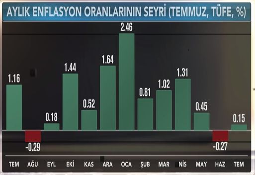 TÜFE, temmuzda geçen yılın aralık ayına göre yüzde 6,05, geçen yılın aynı ayına göre yüzde 9,79 yükseldi. Beklenti TÜFE'de aylık %0.17, yıllık % 9.90 artış olmasıydı. Çekirdek TÜFE %9.20'den %9.60'ya yükseldi.