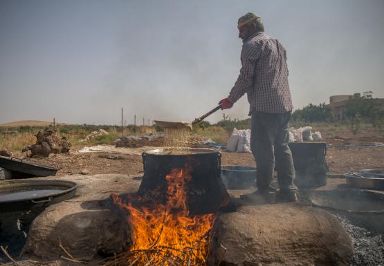 "Sabah topladığımız üzümleri burada sıkıp suyunu çıkarıyoruz. Kaynattıktan sonra içine un ve mısır nişastası katarak tepsilere döküyoruz. Donduktan sonra bıçaklarla kesiyoruz. Günlerce güneşte beklettikten sonra topluyoruz. Buna da kesme adı verilir. Her sene kış için yoğun bir hazırlığımız olur. Bizim işlerimiz sonbaharda başlıyor. Yağmur yağmaması için dua ediyoruz. Yağmur yağdığı zaman bütün emeğimiz heba oluyor. Onun için elimizi çubuk tutuyoruz. İnşallah yağmurlar geç başlar."