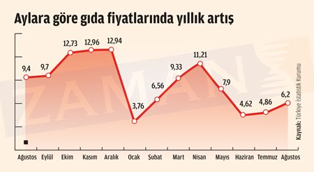 Dar gelirli vatandaşların en önemli harcama kalemi olan gıda sektöründe alarm zilleri yeniden çalmaya başladı. Geçtiğimiz sene kıtlık nedeniyle ciddi sıkıntıların yaşandığı tarım sektörünün başı, yüksek miktarda ithal girdi kullanıldığı için bu sene de döviz kurlarında yaşanan astronomik artışlarla dertte. Tarım sektörünün mazottan tohuma kadar pek çok ithal girdi kalemi bulunduğunu belirten Türkiye Ziraatçılar Derneği Başkanı İbrahim Yetkin, kurlardaki artışın tarıma verilen destekleri alıp götürdüğünü söyledi. Ekonomiciler ise Türkiye İstatistik Kurumu'nun ağustos ayında bir önceki yılın aynı ayına göre yüzde 9,71 olarak açıkladığı gıda enflasyonun yıl sonunda çift haneli rakamlara ulaşacağı, bu durumun da genel enflasyon hedeflerinin tutturulmasını sıkıntıya sokacağı görüşünde. Don, dolu ve kıtlığı atlattıktan sonra düşüş eğilimi gösteren gıda enflasyonunun yeniden yükselişe geçmesi ise kötümser senaryonun gerçekleşeceği yönündeki beklentileri güçlendirdi.