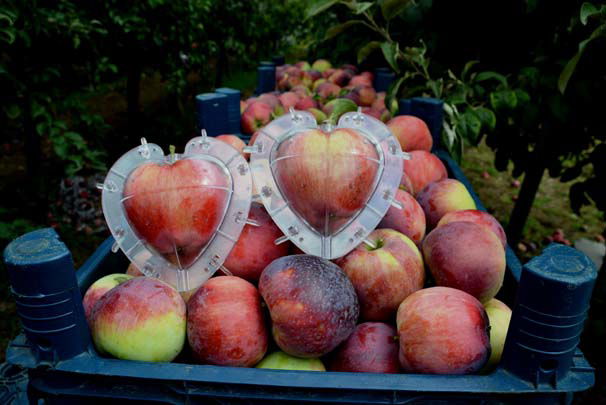 Kahramanmaraş'ta bir kadın girişimcinin, eşiyle birlikte oluşturduğu bahçede çeşitli aparatlarla kalp ve küp şeklinde ürettikleri elmalar, yurt içi ve dışındaki otellerin menülerini süslüyor.