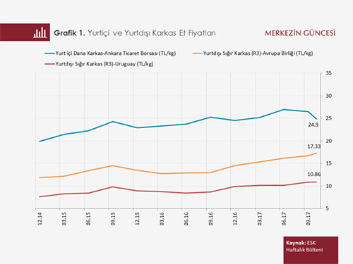 Türkiye'de kırmızı etin görece pahalı olduğu biliniyor. Kişi başına düşen milli geliri Türkiye'nin çok üzerinde olan Avrupa Birliği ülkelerinde bile ortalama dana karkas et fiyatı Türkiye'deki fiyatın altında seyrediyor