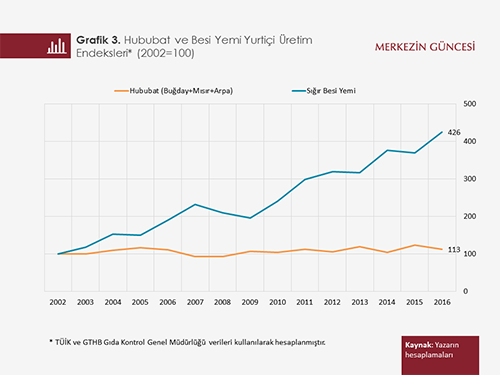 Bu gözlemler ülkemizde yüksek et fiyatlarının ana sebeplerinden birinin göreli olarak yüksek hububat fiyatlarının olabileceğine işaret etmekte. Yüksek hububat fiyatları yüksek besi yemi fiyatlarına yol açmakta. Türkiye'de büyükbaş hayvan besiciliğinin büyük oranda besi yemi kullanımına bağımlı olduğunu dikkate aldığımızda da göreli olarak yüksek dana eti fiyatı gerçeği ile karşı karşıya kalıyoruz.
