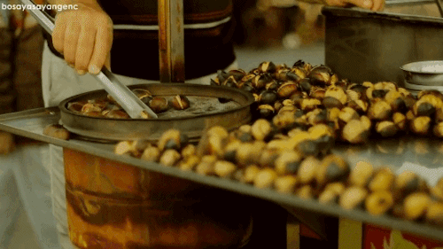 Bize kalırsa kestane de mutluluk salgılayan bir meyve. Hem yapımı, hem ortamı pişerken çıkan kokusu,  ve yerken ki haz insana mutluluk veriyor doğrusu.