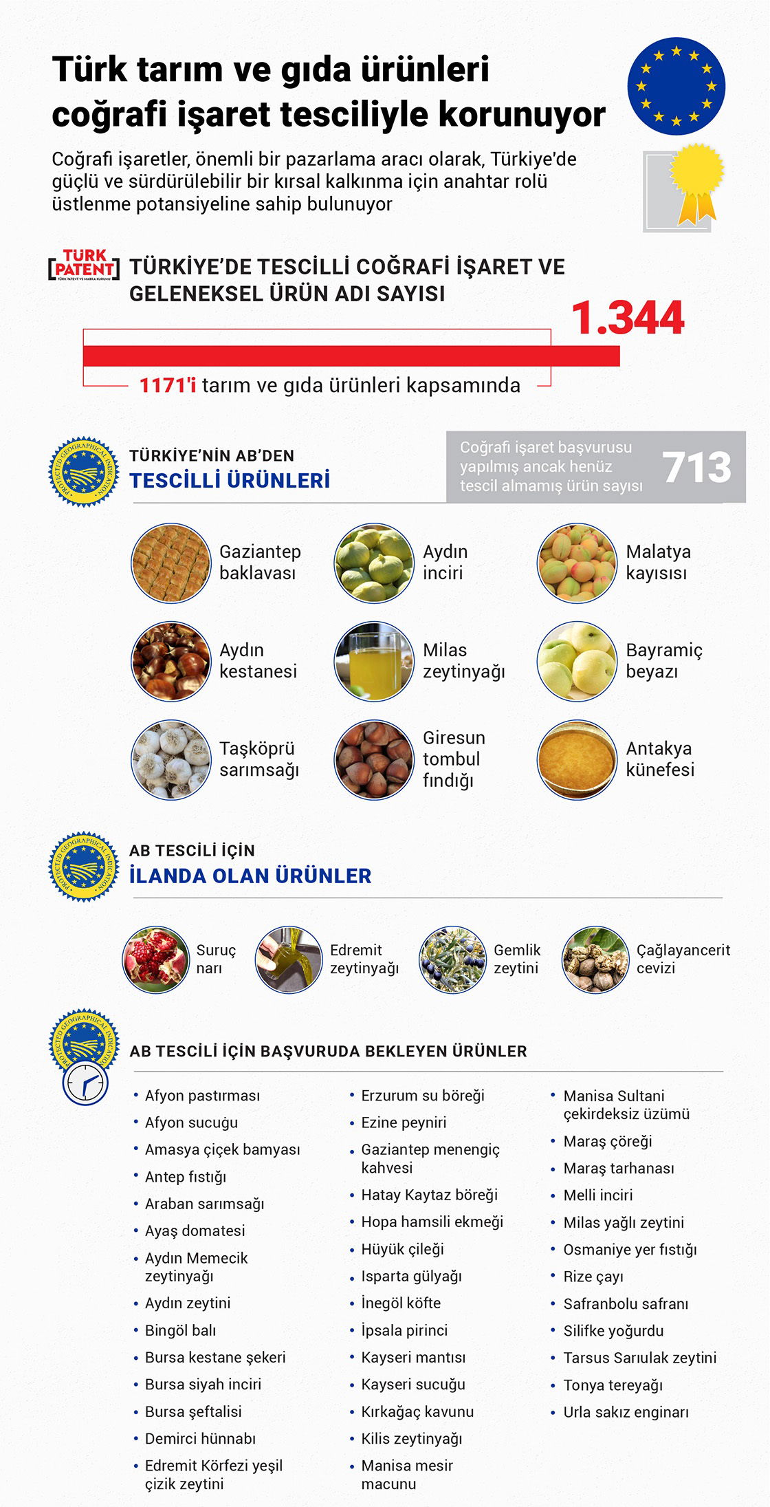 24 Nis '23 Tarım ve Orman Bakanlığı, Türkiye'nin gıda ürünleri alanındaki geleneksel birikimini uluslararası düzeyde korumak amacıyla 1171 ürünü tescil ettirmeyi başardı. Gıda Haberleri 25 defa okundu Sosyal Medyada Paylaş Önceki Haber Gıda Fiyatları 2022`de Dünya Çapında Rekor Seviyeye Ulaştı 13.04.2023 10:49 Sonraki Haber Rusya-Ukrayna Tahıl Anlaşmasından Neden Çekildi? Küresel Gıda Sistemi İçin Ne Anlama Geliyor? 22.07.2023 11:14