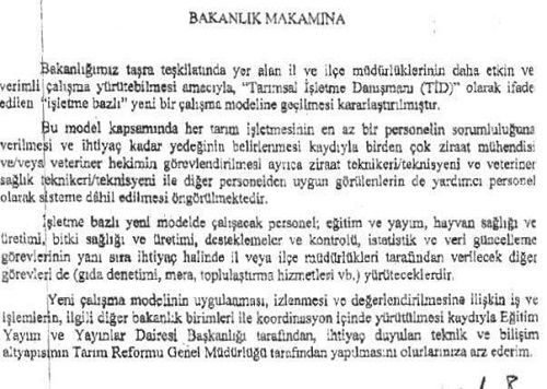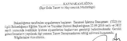 Bakanlık il ve ilçelere yazılar gönderilmeye başlandı. Gönderilen yazılarda personelin ivedilikle tarımsal işletme ziyaretlerine başlaması gerektiği belirtiliyor.