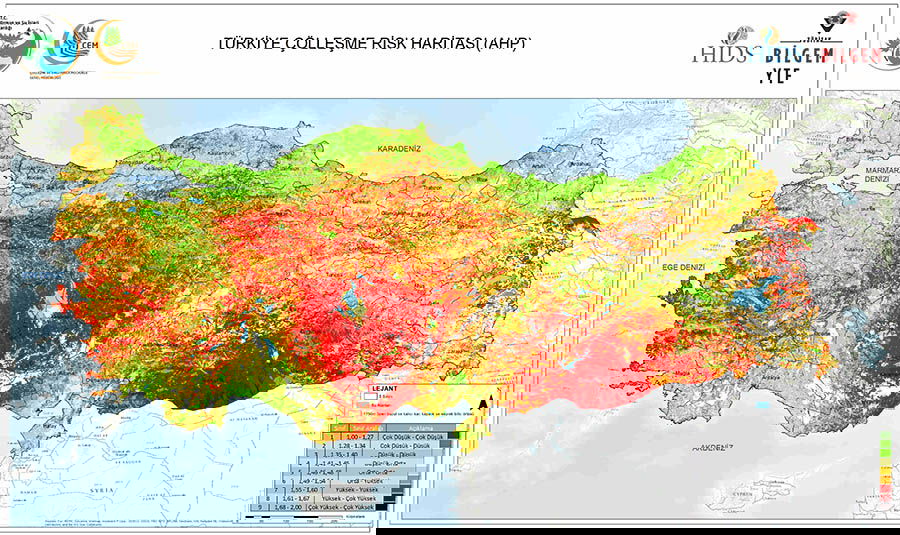 Hazırlanan haritaya göre, Türkiye’nin yaklaşık yüzde 47‘si orta ve üzeri yüksek risk grubuna giriyor. Konya-Karapınar, Iğdır-Aralık, Urfa-Ceylanpınar çölleşmiş durumda iken Tuz Gölü havzası, Ereğli-Karaman bölgesi, Urfa-Ceylanpınar-Mardin-Batman hattı, Eskişehir çevresi ise orta ve yüksek risk grubunu oluşturuyor.