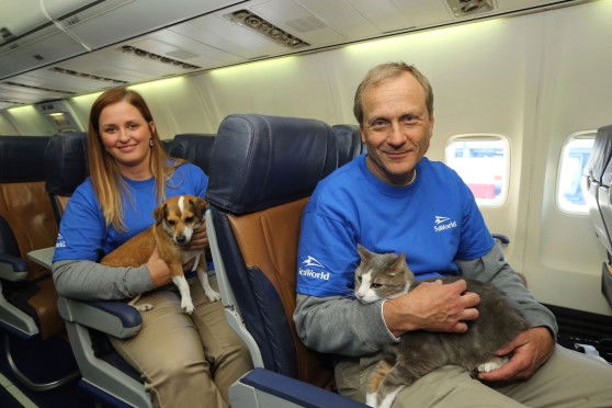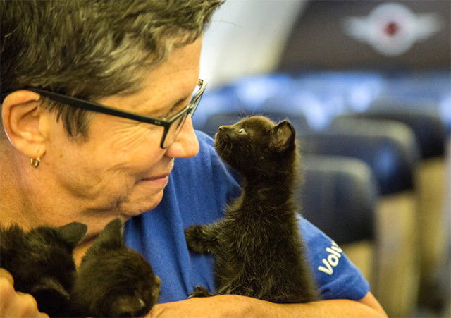 Southwest Havayolları'nın kurtarma projesinde çalışan hostesler kurtarılan hayvanlara servis yapmayı da ihmal etmedi.