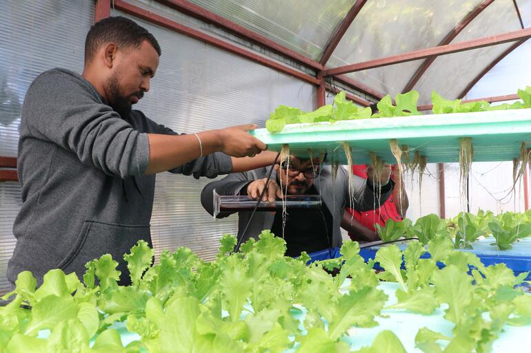 Öğrencilere, toprak kullanmadan su dolu havuzlar üzerinde strafor kullanarak marul yetiştirmenin en son teknikleri öğretiliyor. Eğitimlerini tamamlayan öğrenciler, bu yenilikçi yöntemi kendi ülkelerinde uygulayabilecek becerilere sahip olacaklar ve böylece ekonomilerine katkıda bulunabilecekler.